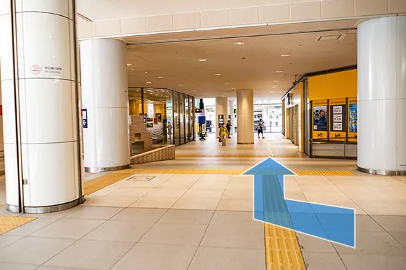 ①名鉄「名鉄岐阜」駅改札を出て、右折します。