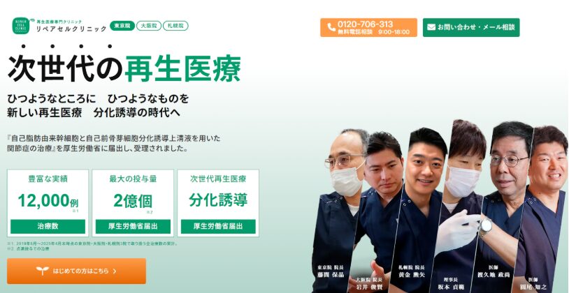 リペアセルクリニックは、国内では数少ない自己脂肪由来の幹細胞を用いた再生医療を提供しており、東京、大阪、札幌にてクリニックを展開しています。