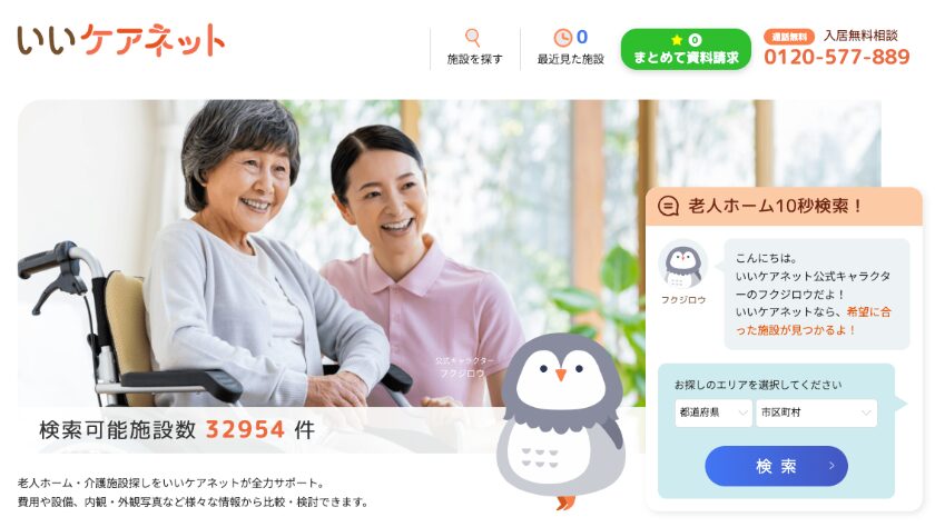 全国の老人ホームが検索できる「いいケアネット」は、ご家族やケアマネージャーの声から生まれた介護支援サイトです。